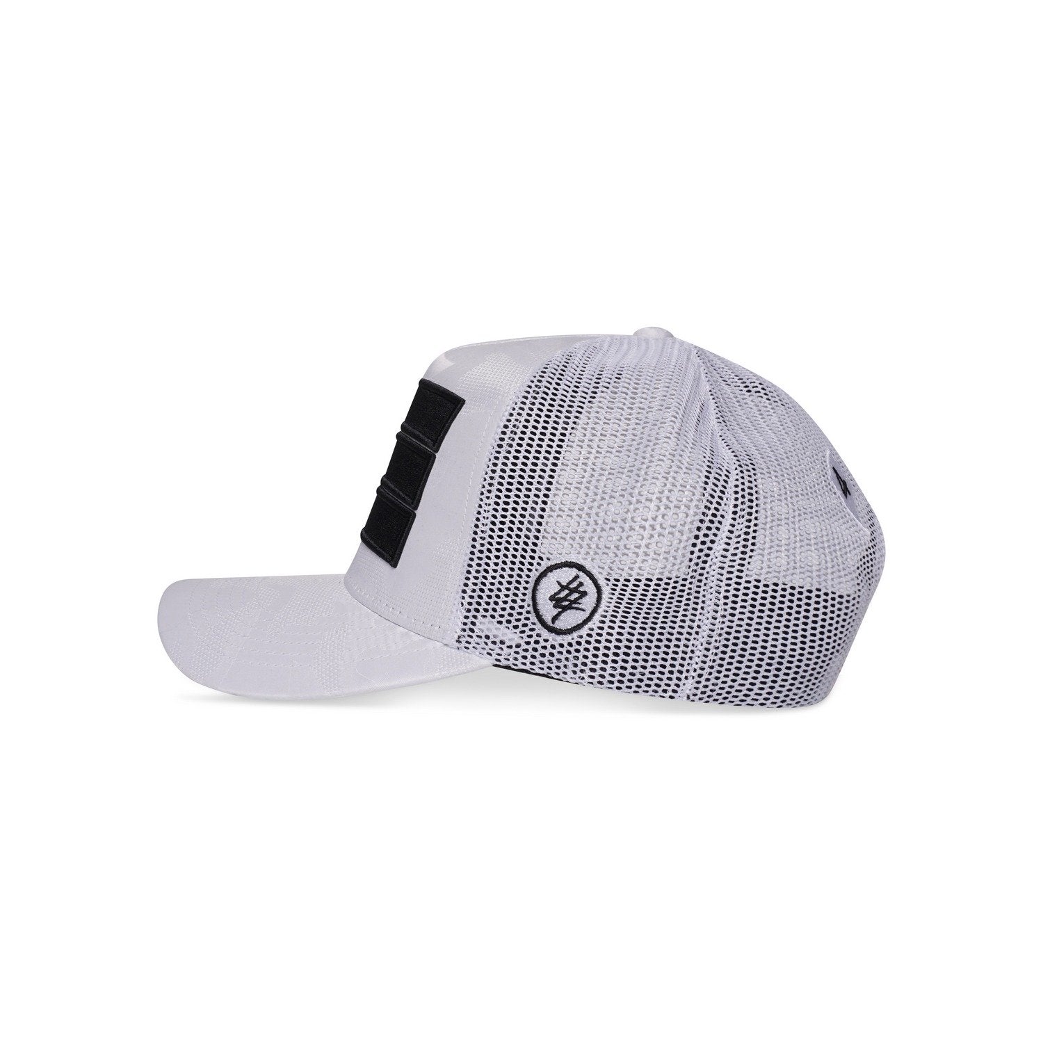 Our White Camo Trucker is a must-have hat. The trucker hat features the iconic 474 3 bars on the front embroidered in black, ‘474’ logo to the side, finished in an all-white camo design base layer and mesh back.